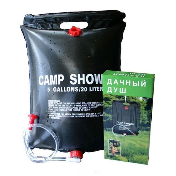 Компактный переносной душ Сamp Shower пригодится везде, будь то поездка на природу, на дачном участке, на море и так далее.Портативный походный душ имеет 20 литровый герметичный складной резервуар из очень прочного и легкого ПВХ материала.Переносной душ сделан специально из черного цвета, чтобы лучше поглощать солнечный свет и быстро нагреваться. Он без проблем прослужит Вам не один сезон.