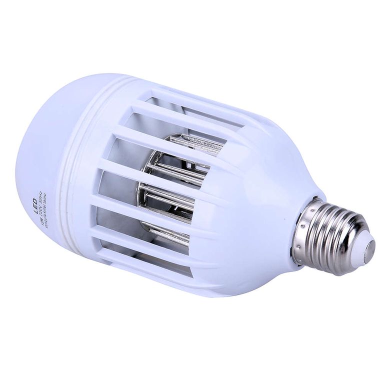 Необычное устройство объединило в себе обычную светодиодную лампу и антимоскитную ловушку. В верхней части прибора располагается источник, излучающий особые волны, которые привлекают насекомых. Попадая внутрь металлической решетки, они получают разряд тока и погибают.