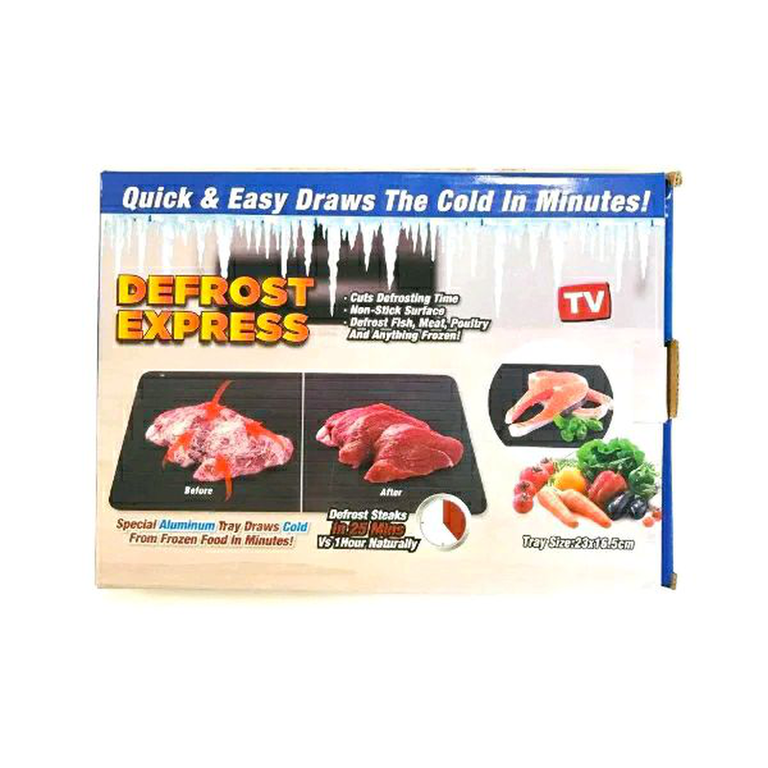 Изделие разморозит ягоды, колбаски, креветки или бекон за несколько секунд. Если вам нужен более крупный продукт (куриная грудка, отбивные и так далее), то для разморозки понадобится 30-60 минут. В процессе не участвует электричество или химические вещества.