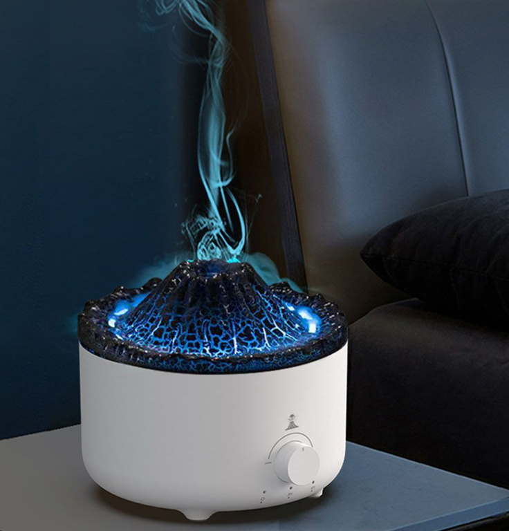 Мини аромадиффузор вулкан обладает низким уровнем шума, оснащен подсветкой , отлично подходит для использования в качестве ночника, и увладнителя помещения.