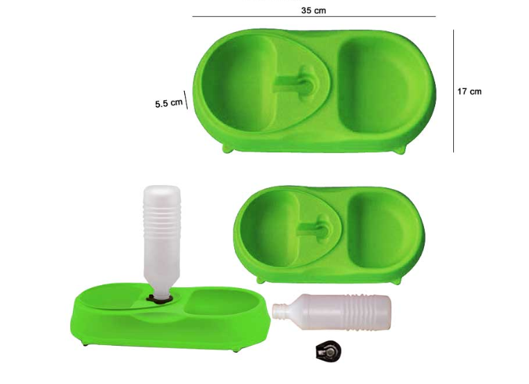 Миска имеет два отделения, которые позволяют хранить в ней как воду, так и еду. Она имеет эргономичную форму, что позволяет легко чистить и насыпать корм. Двойная пластиковая миска с практичным дозатором для воды обеспечивает постоянный доступ свежей воды для нашего питомца во время длительного отсутствия Домашних любимцев.