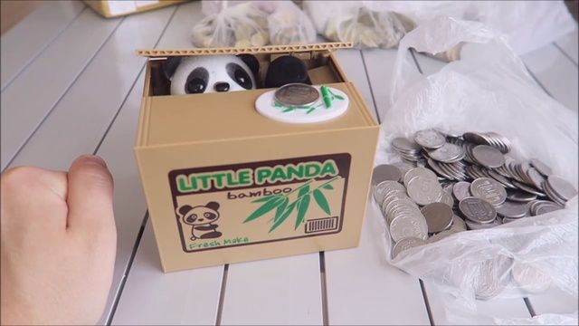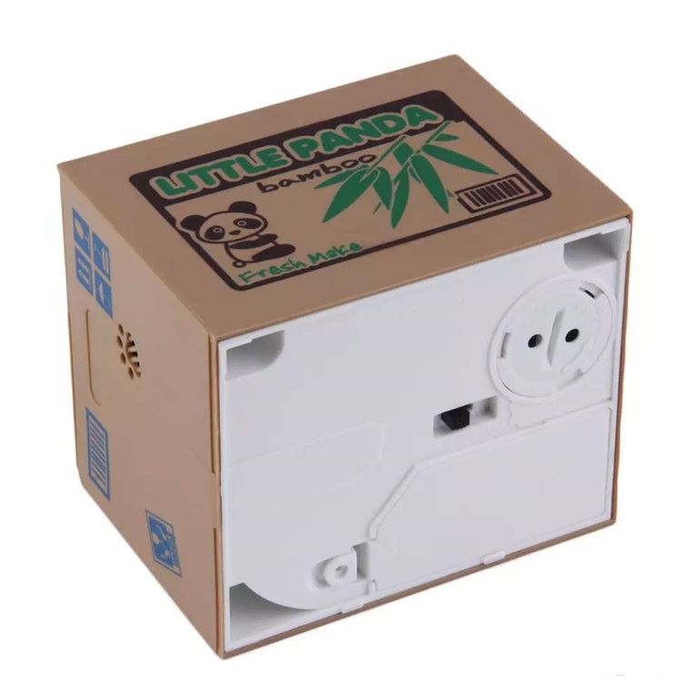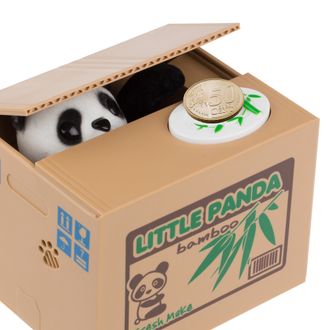 Копилка Панда-воришка – это оригинальный сувенир и забавная идея для подарка, которая приведет в восторг детей и придется по вкусу взрослым. Копилка Панда – это небольшая пластиковая коробка, внутри которой прячется панда. Если положить монетку на белую площадку сверху коробки, то сработает механизм, крышка приоткроется, панда высунет руку и заберет монетку себе. Монетки можно достать через открывающееся отверстие на дне коробке.
