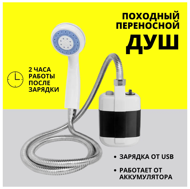 Походный переносной душ Portable Outdoor Shower с аккумулятором и зарядкой от USB пригодится на даче или в путешествии, теперь вам не нужна шланг дешевая лейка, так как обладает небольшими размерами и является переносным.