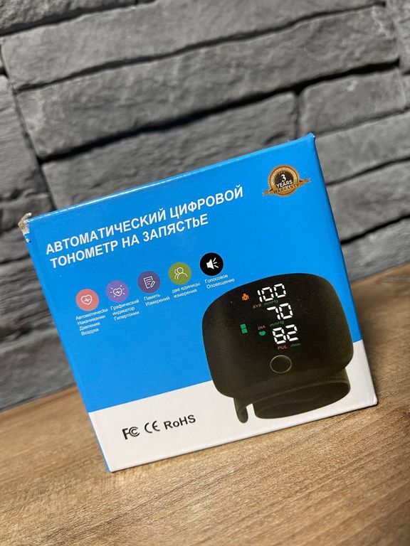 Обновлённая версия, уже ставшей культовой, модели тонометра Цифровой автоматический тонометр на запястье-это современный аппарат для измерения артериального давления и пульса. Компактный цифровой тонометр можно взять с собой в любую поездку, в путешествие, на отдых, спортивные мероприятия, использовать на даче и дома. В комплект входит инструкция на русском языке, зарядное устройство, а также стильный, компактный кейс, который можно вместить в рюкзак, небольшую сумку или ручную кладь. Тонометр подходит для взрослых и детей. Универсальная манжета регулируется и подходит для любого размера запястья. В аппарат встроено голосовое оповещение на русском языке. Тонометр на запястье имеет стильный дизайн, читабельный цветной ЖК экран, индикатор заряда аккумулятора и опцию сбора данных. Питание осуществляется с помощью зарядного USB Type-C провода. Цифровой тонометр имеет встроенную память измерений. Прибор производит замеры без подключения к электричеству. Отличный подарок бабушке, дедушке, свекрови, папе, маме. Нас также ищут: автоматический тонометр, тонометр на запястье, цифровой тонометр. прибор для измерения артериального давления.