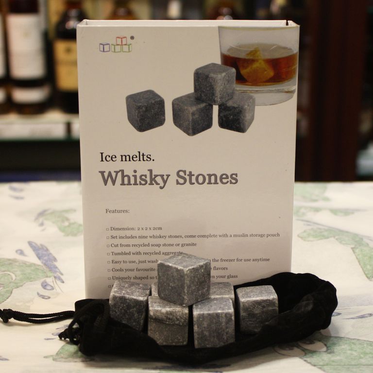 Охлаждающие камни упакованы в бархатный мешочек и являются достойным подарком истинному ценителю крепких напитков.