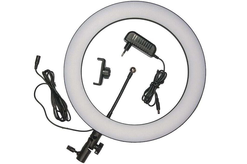 Кольцевая лампа позволит выставить отличный свет для съемки видео или фото. Кольцевое освещение позволит получить качественное изображение в любой комнате. Лампа оснащена подвижным держателем для смартфона, в котором можно зафиксировать устройства шириной до 8 см. Подвижный механизм позволит наклонять свет в наиболее удобное положение. Со встроенным диммером можно регулировать свет от холодного до теплого.