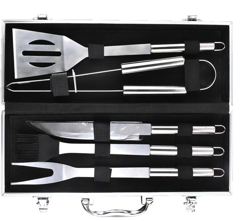 Компактный набор для барбекю, гриля, шашлыка в подарочном кейсе из 5 предметов.