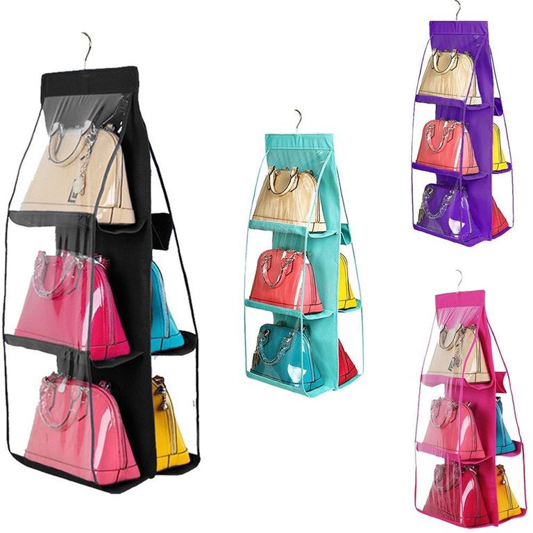 Если вы заботитесь о сохранности своих сумок, которые не носите в данный момент, то можете приобрести для них этот удобный и стильный органайзер. Изделие может подвешиваться в шкаф или на стену, и обладает несколькими отделениями, в которые помещаются сумки.
