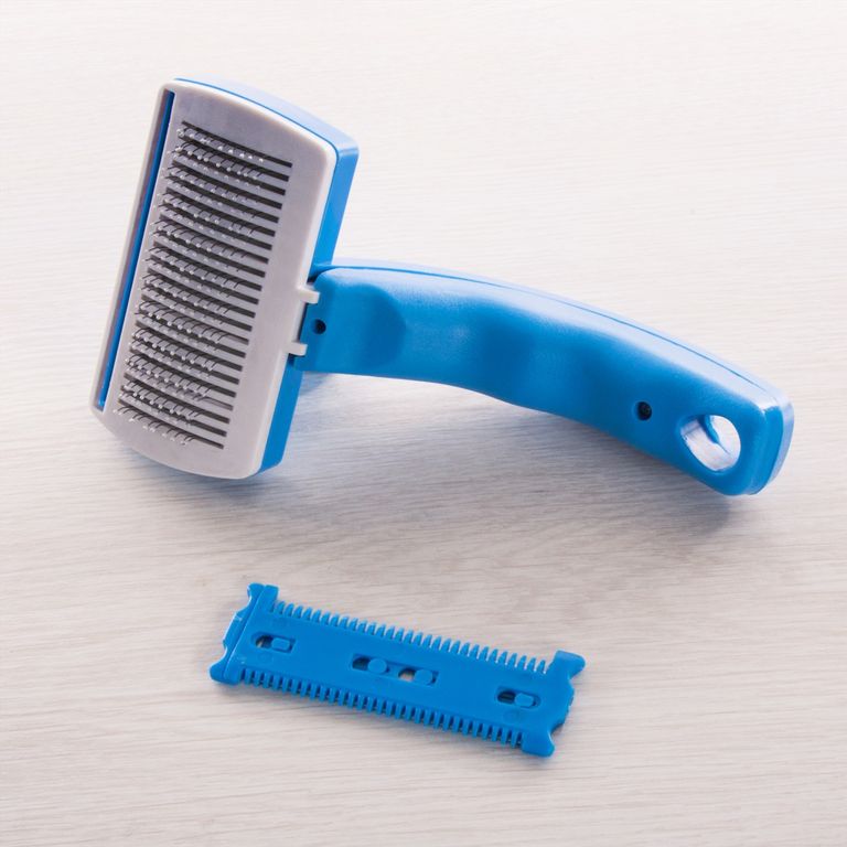 Приспособление прекрасно удаляет старую шерсть и грязь, способствуя оздоровлению и росту новой шерсти, а также отлично подходит для вычесывания блох. Закруглённые кончики зубцов мягко и бережно воздействуют на кожу животного, а также создают дополнительный массажный эффект. Щётка изготовлена из прочного пластика и имеет удобную изогнутую ручку. После окончания процедуры вычёсывания Вам не нужно собирать шерсть со щётки - достаточно просто нажать на кнопку и встроенная пластина сдвинется, оставив зубчики абсолютно чистыми. Pet Zoom оснащен также специальной насадкой с функцией триммера, посредством которого можно подравнять отросшую шерсть - как мокрую, так и сухую.
