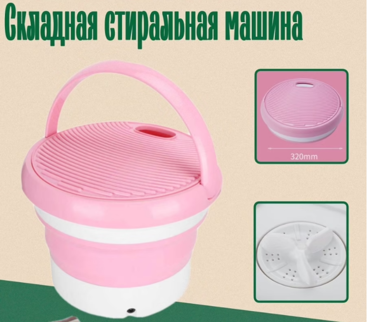 Самая быстрая доставка! Стиральная машина-ведро избавит от ручной стирки мелких вещей, деликатного белья. Альтернатива большим стиралкам в студенческом общежитии, кемпинге, на даче.Складная стиральная машина-ведро упрорстит жизнь, а также съэкономит пространство в маленькой квартире, общежитии, кемпинговом, дачном или пляжном домике. Вы можете стирать в ней до 1,5 кг белья за раз. Мини-стиралка заменит ручную стирку, избавит от хлопот на отдыхе или в командировке, избавит от необходимости гонять стиральную машину ради нескольких мелких вещей, нижнего белья, носков. Мини стиральная машина-ведро занимает минимум места, легко поместитсяв дорожную сумку и чемодан. С ней удобно путешествовать, брать с собой на отдых. Дорожная стиральная машинка не только стирает белье, но и обеззараживает его за счет ультразвуковой выработки озона. Применение: в емкость залить воду, включить в сеть и нажать кнопку стирки.