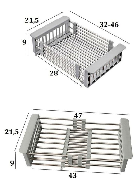 Раздвижная сушилка для раковины отлично подходит для сушки посуды, столовых приборов после мытья, а так же овощей и фруктов.