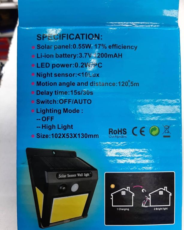 Светодиодный Фонарь 40 Led solar powered с датчиком движения, оснащенные солнечной панелью и питающиеся исключительно от энергии солнца. Всё что нужн от пользователя это закрепить светильник там, где необходимо, по средствам двустороннего скотча или закрепив через шурупы, больше никаких проводов и сложных электрических схем.