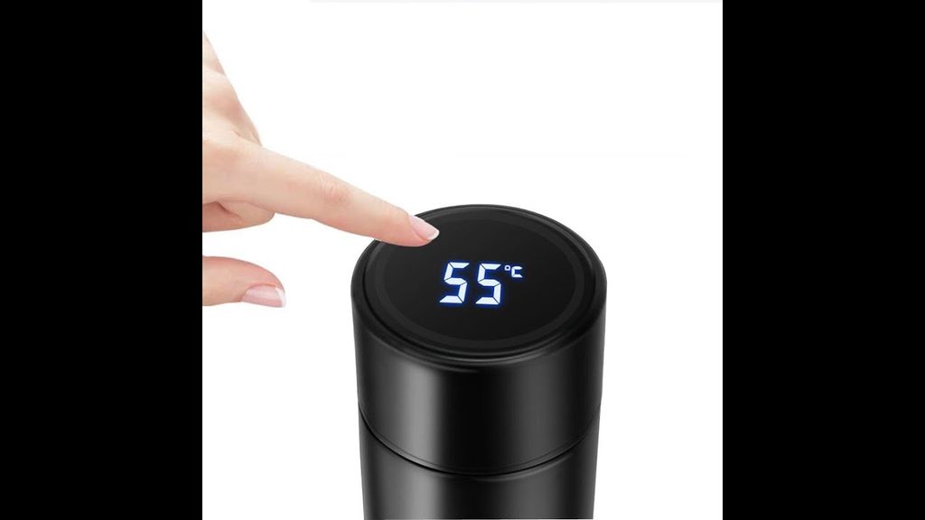 Термос с датчиком температуры выполнен из прочной нержавеющей стали, обеспечивает эффективное поддержание температуры жидкости внутри. Термос оснащен сенсорным индикатором температуры, позволяющим отслеживать процесс изменения температуры содержимого. Для отображения температуры на сенсорном монохромном экране используется встроенный аккумулятор. Экран автоматически отключается через 3-4 секунды.