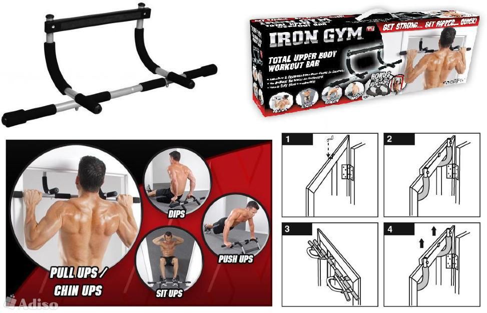 Теперь стало возможным работать над своим телом в домашних условиях на турнике-тренажере Iron Gym (Айрон Джим). Этот компактный тренажер легко крепится к двери или устанавливается на полу, сразу после этого можно начинать полноценные спортивные тренировки. С Iron Gym можно делать 12 силовых упражнений: подтягиваться, приседать, отжиматься, прорабатывать пресс, увеличивать силу рук и наращивать мышцы на плечах, а также любые другие упражнения, цель которых развить силу организма.