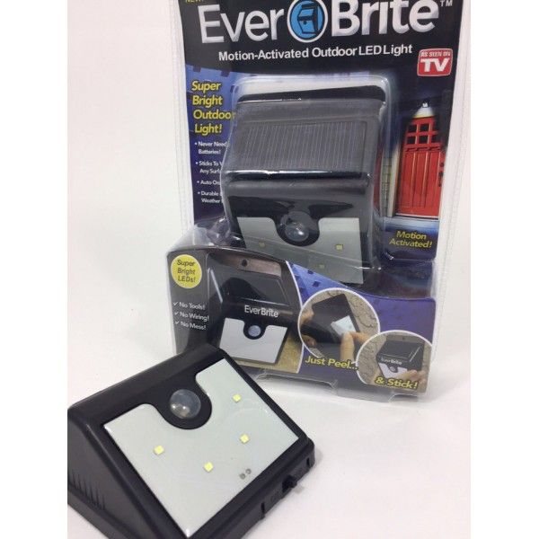 Плоды технического прогресса - светильники Ever Brite с датчиком движения, оснащенные солнечной панелью и питающиеся исключительно от энергии солнца. Всё что нужн от пользователя это закрепить светильник там, где необходимо, по средствам двустороннего скотча или закрепив через шурупы, больше никаких проводов и сложных электрических схем.